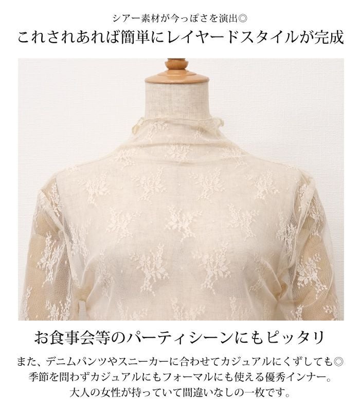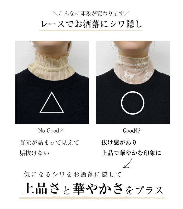 送料無料 首のシワを隠せるレースインナー レディース 春 夏 秋 冬 S M L LL 3L 長袖 ≪ゆうメール便配送05・代引不可≫ | アクアガレージ aquagarage