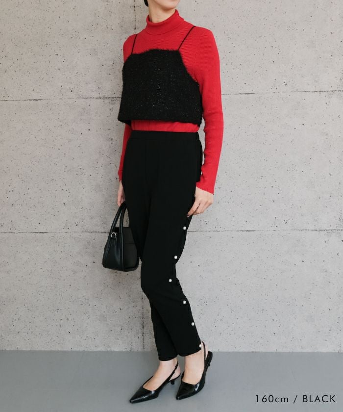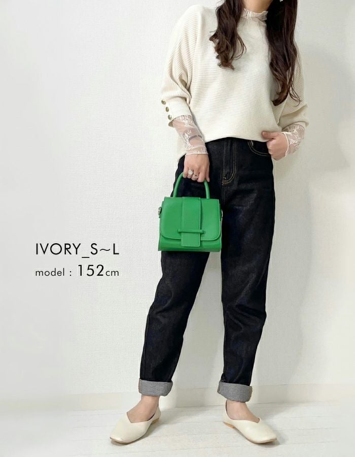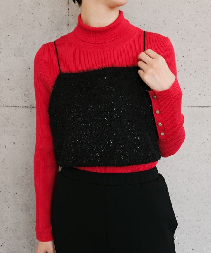 袖ボタンハイネックニットトップス レディース 秋 冬 | アクアガレージ aquagarage