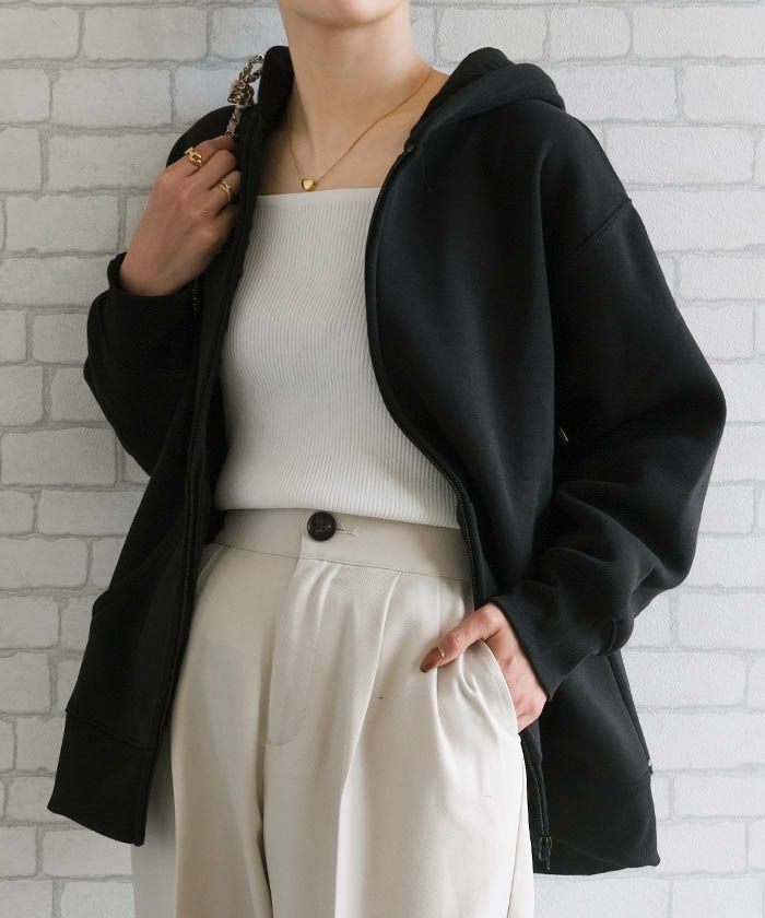 ヘビーウエイト裏起毛オーバーサイズジップパーカー 秋 冬 M L レディース | アクアガレージ aquagarage