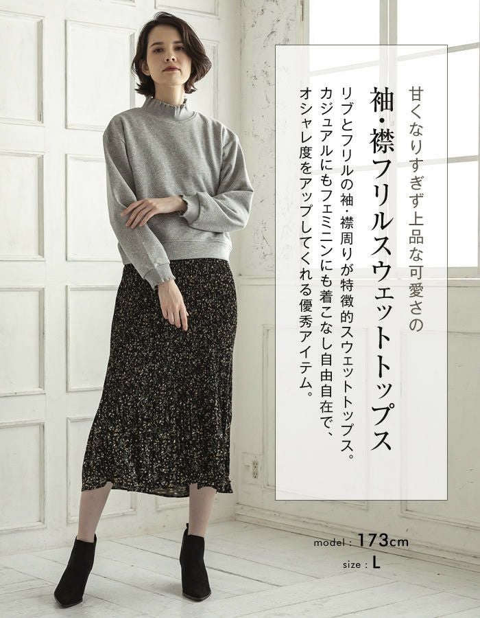 送料無料 袖・襟フリルスウェットトップス レディース 秋 冬 M L 長袖 ≪ゆうメール便配送30・代引不可≫ | アクアガレージ aquagarage