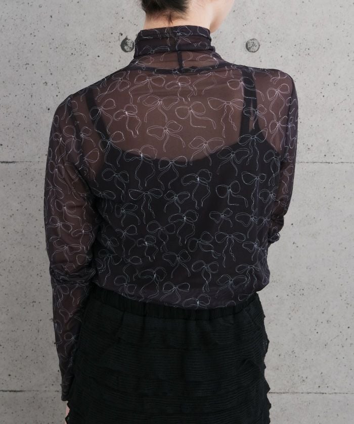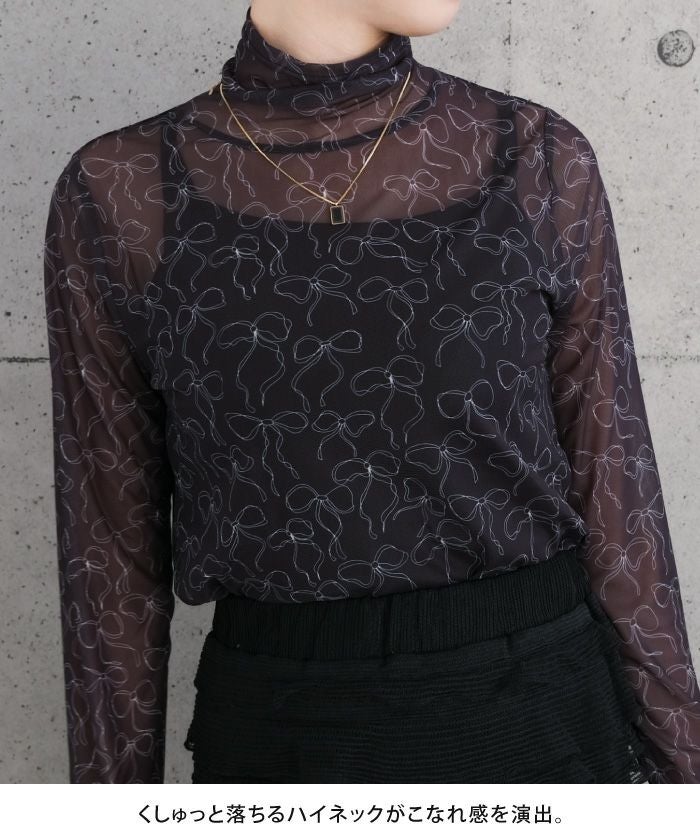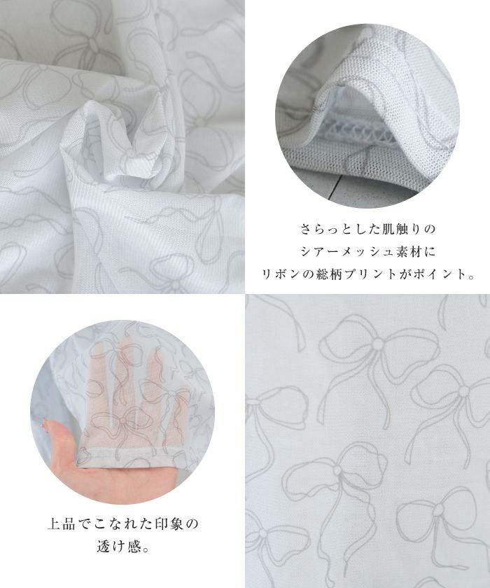 送料無料 リボン柄シアートップス 春 夏 秋 M レディース ≪ゆうメール便配送10・代引不可≫ | | アクアガレージ aquagarage