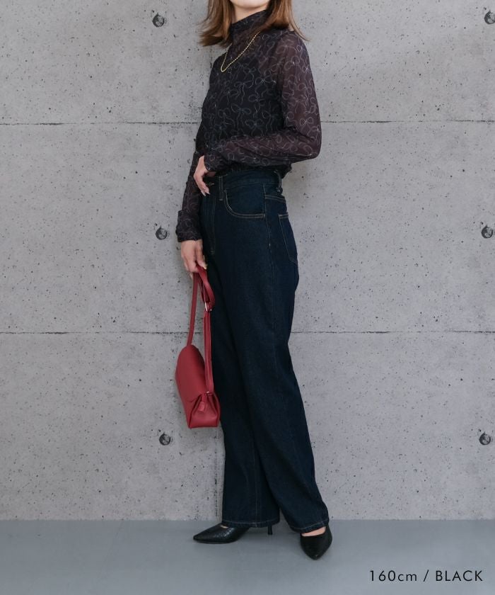 送料無料 総柄シアーネックリボンブラウス 春 夏 秋 ≪ゆうメール便配送10・代引不可≫ | アクアガレージ aquagarage