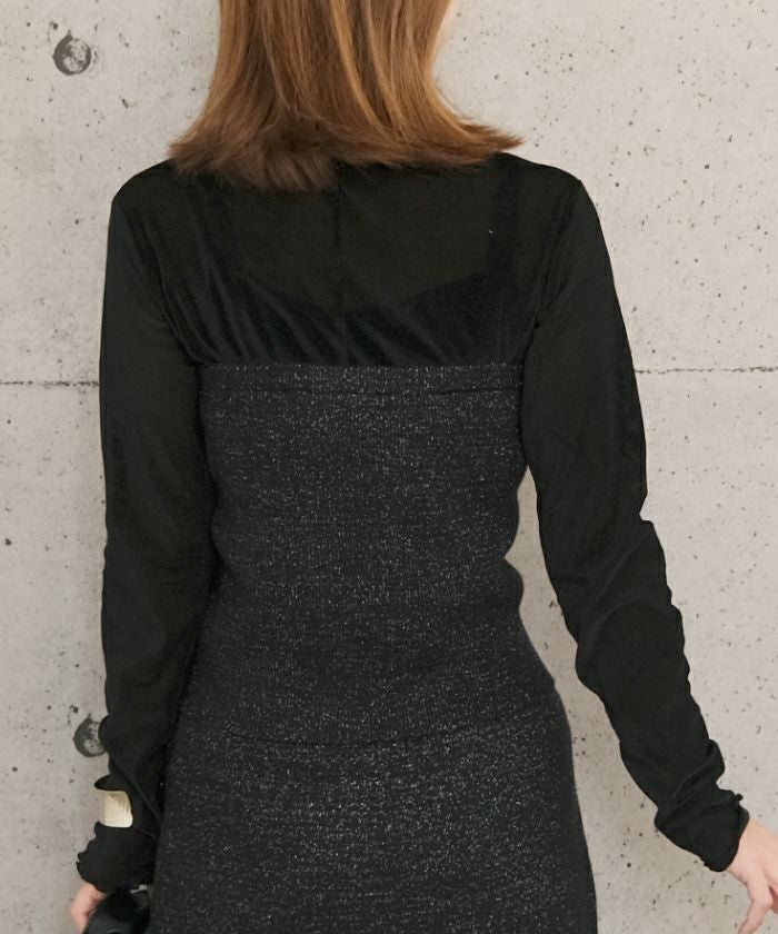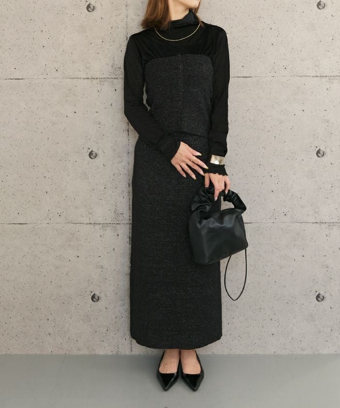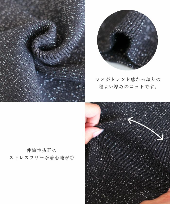 【セットアップ可】ミラノリブラメVネックニットチュニック レディース 春 秋 冬 | アクアガレージ aquagarage