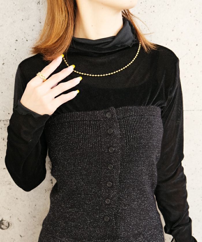 送料無料 パールボタン付きプチハイネックニットトップス レディース 春 秋 冬 長袖 M L ≪ゆうメール便配送30・代引不可≫ | アクアガレージ aquagarage