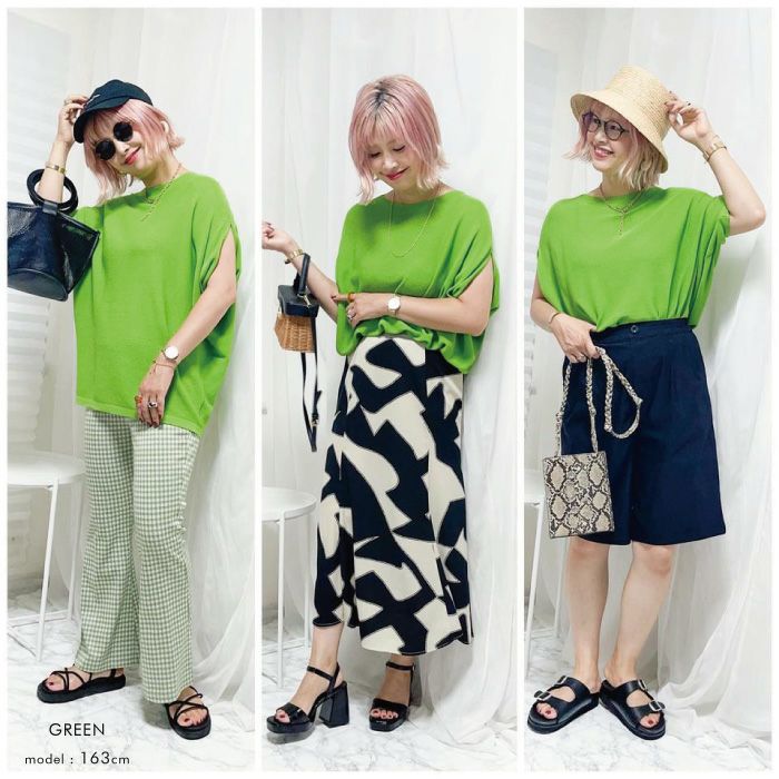 送料無料 サマーニットトップス レディース 春 夏 半袖 ノースリーブ フレンチスリーブ リブニット ≪ゆうメール便配送10・代引不可≫ | アクアガレージ aquagarage
