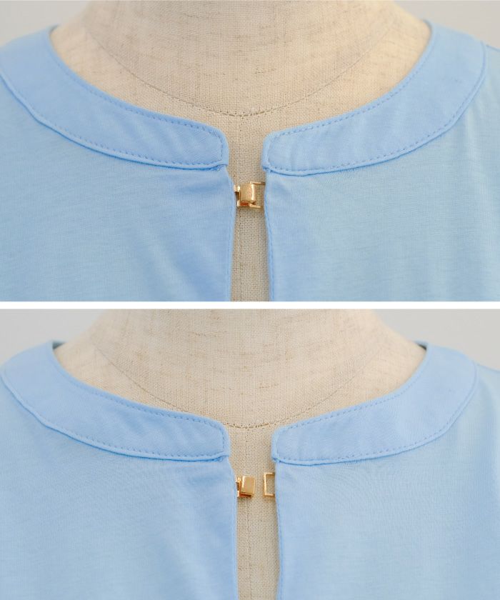送料無料 パール釦キーネックブラウス 春 夏 秋 ≪ゆうメール便配送20・代引不可≫ | アクアガレージ aquagarage