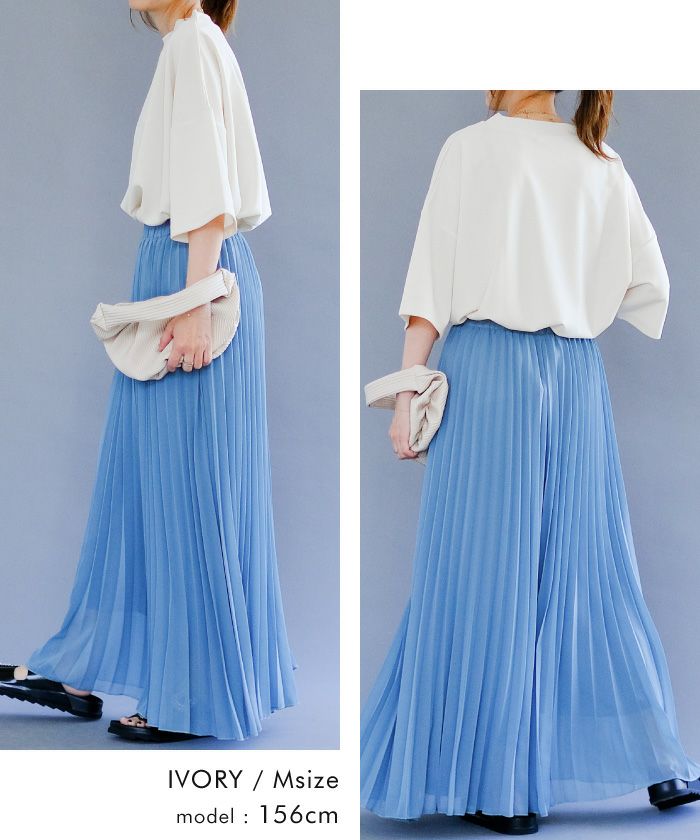 送料無料 プリーツスリーブカットソー レディース 春 夏 M ≪ゆうメール便配送10・代引不可≫ | アクアガレージ aquagarage