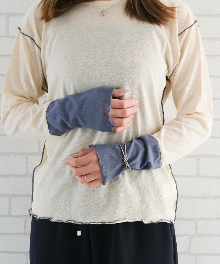 送料無料 配色シアーカットソー 春 秋 M レディース ≪ゆうメール便配送20・代引不可≫ | | アクアガレージ aquagarage
