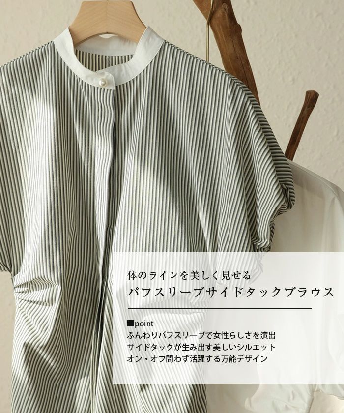 送料無料 パフスリーブサイドタックブラウス 春 夏 秋 M L ≪ゆうメール便配送20・代引不可≫ | アクアガレージ aquagarage