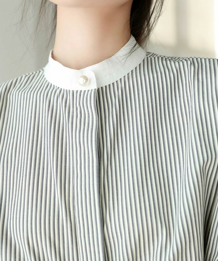送料無料 無地orストライプ 切り替えデザインジョーゼットブラウス ≪ゆうメール便配送20・代引不可≫ | アクアガレージ aquagarage