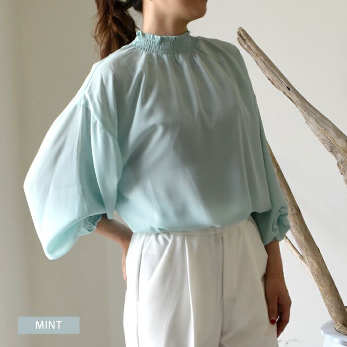 【999円祭り】スタンドカラーシアー素材ブラウス レディース 春 夏 秋 長袖 M L | アクアガレージ aquagarage