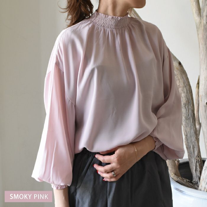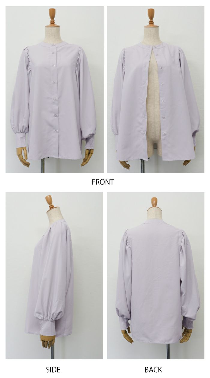 【最終値下げ価格】バンドカラーギャザーブラウス レディース 春 秋 M L 長袖 | アクアガレージ aquagarage