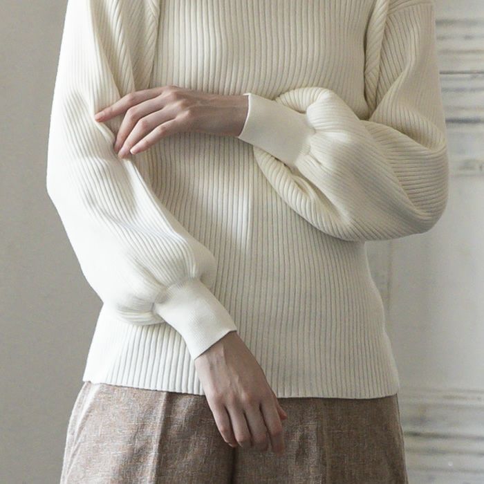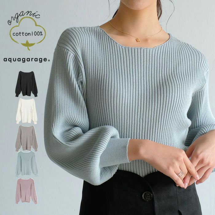 ぽわん袖ニットトップス レディース 春 秋 冬 7分袖 8分袖 M L | アクアガレージ aquagarage
