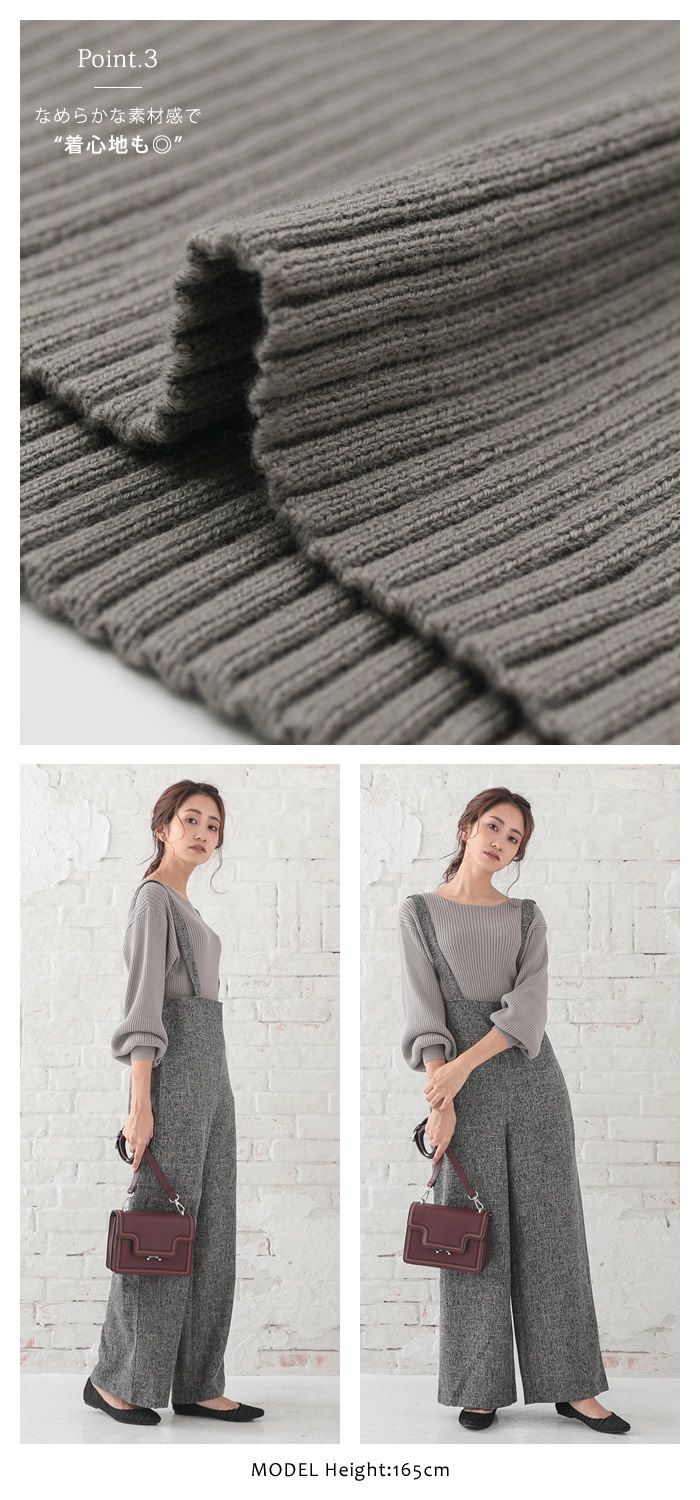 送料無料 【セットアップ可】リブニットタートルロングプルオーバー レディース 春 秋 冬 | アクアガレージ aquagarage