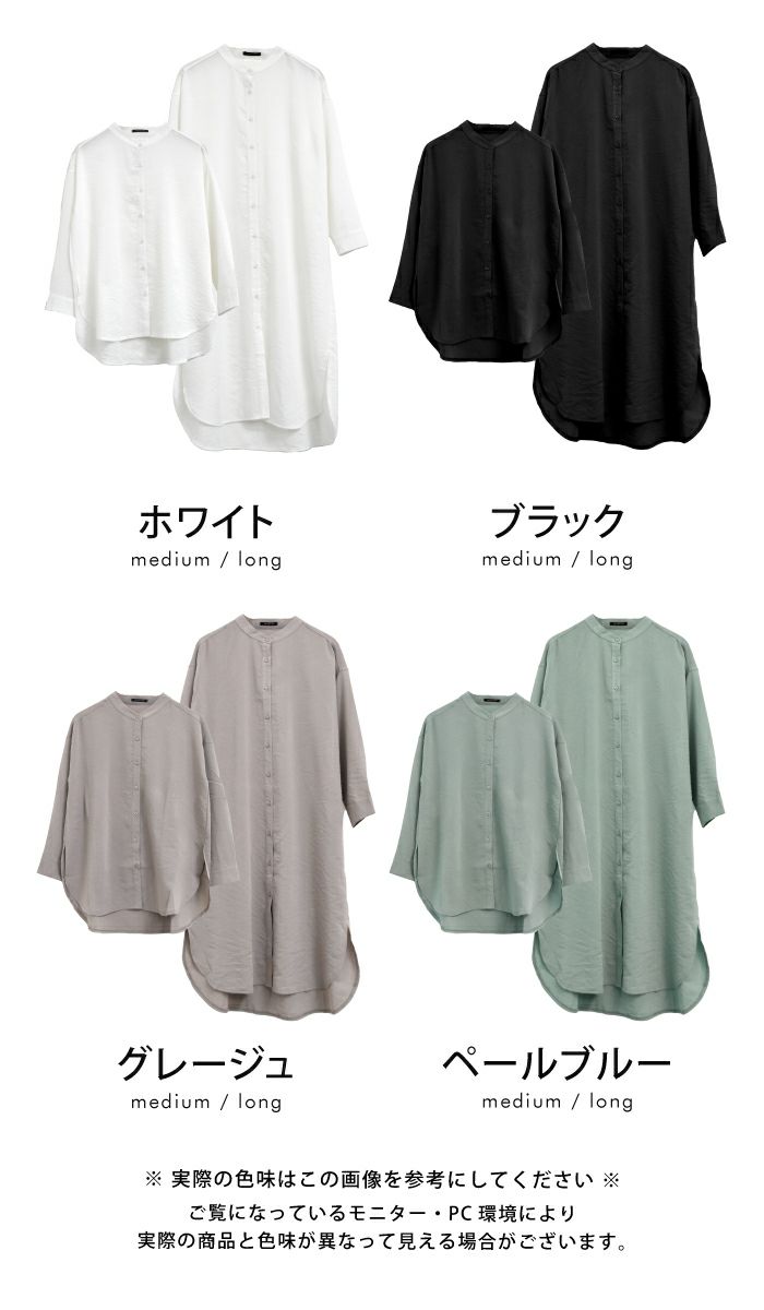 【最終値下げ価格】選べる2丈 バンドカラーロングシャツ レディース 春 夏 秋 長袖 | アクアガレージ aquagarage