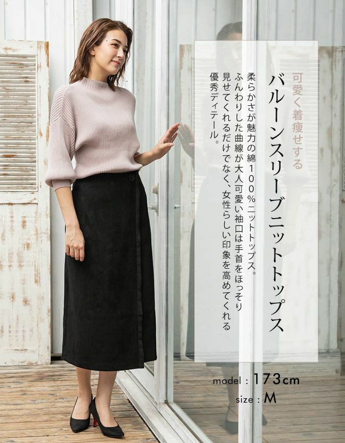 バルーン袖ニットトップス レディース 春 秋 冬 大きいサイズ 長袖 | アクアガレージ aquagarage