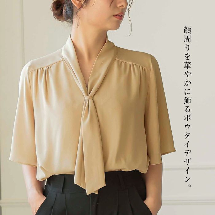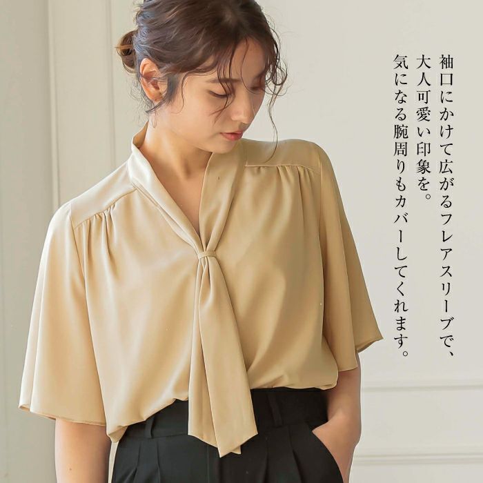 送料無料 ボウタイブラウス レディース 春 夏 秋 半袖 五分袖 フレアスリーブ ≪ゆうメール便配送10・代引不可≫ | アクアガレージ aquagarage
