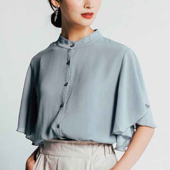 【999円祭り】フリルスタンドカラーシフォン生地ブラウス | アクアガレージ aquagarage