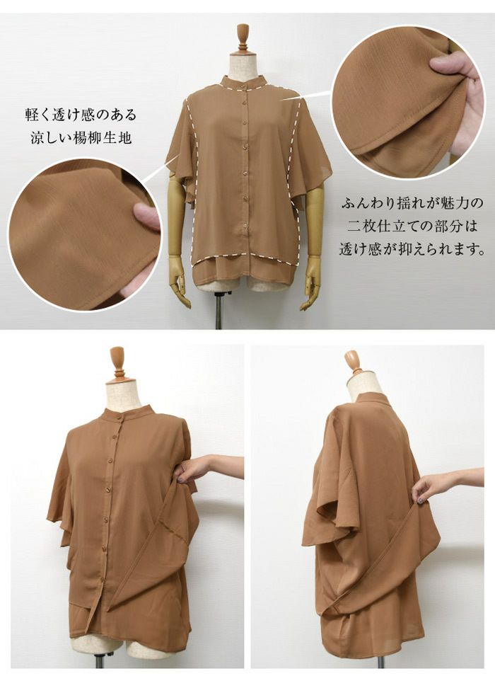 送料無料 シアースリーブシャーリングペプラムブラウス 春 夏 秋 M ≪ゆうメール便配送20・代引不可≫ | アクアガレージ aquagarage