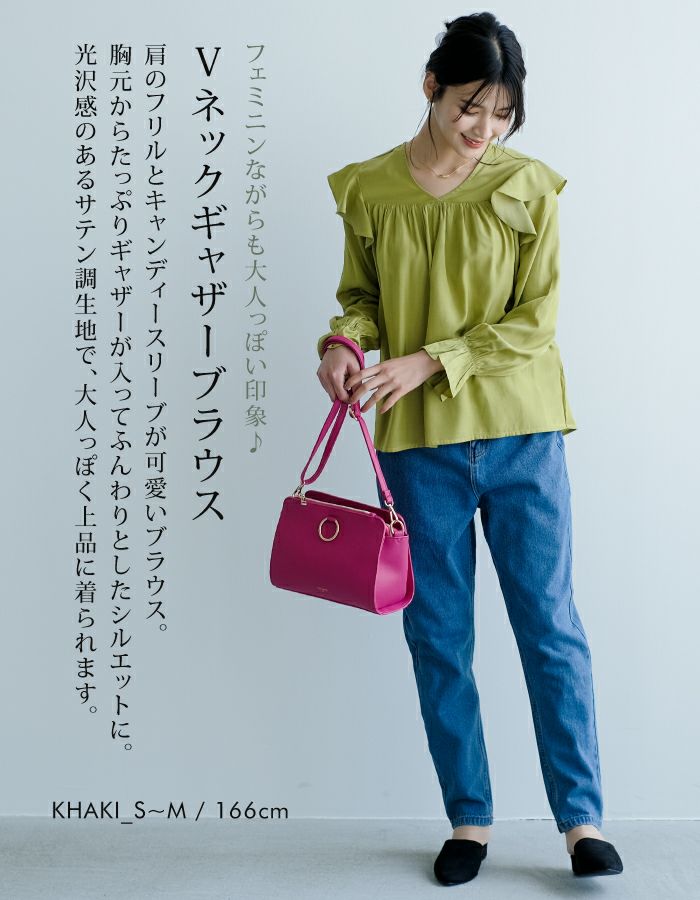 【最終値下げ価格】Vネックギャザーブラウス レディース S M L 春 秋 長袖 | アクアガレージ aquagarage