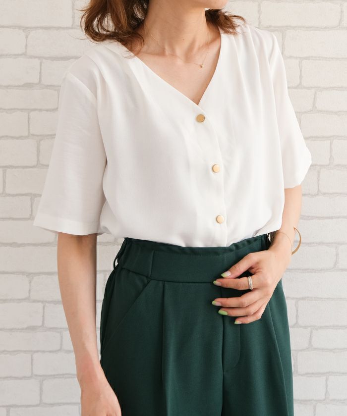送料無料 ショルダータックVネックブラウス 春 夏 秋 ≪ゆうメール便配送10・代引不可≫ | アクアガレージ aquagarage