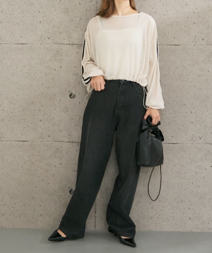 【最終値下げ価格】ライン入り裾ドロストショートプルオーバー 春 夏 秋 M レディース | | アクアガレージ aquagarage