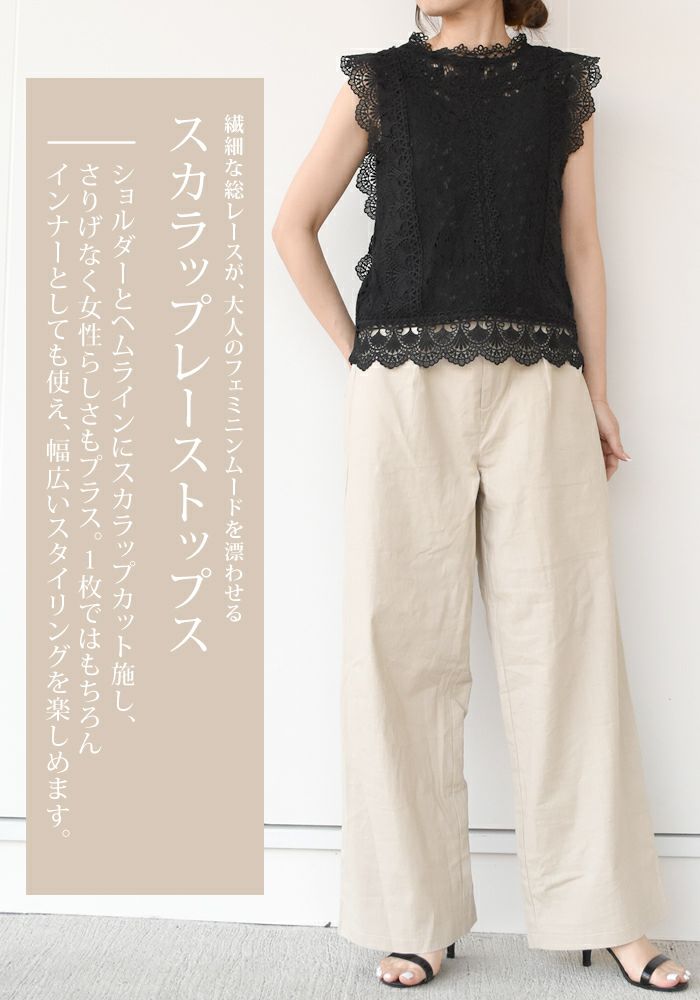送料無料 スカラップレースブラウス レディース 春 夏 ノースリーブ S M L ≪ゆうメール便配送20・代引不可≫ | アクアガレージ aquagarage