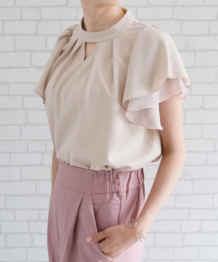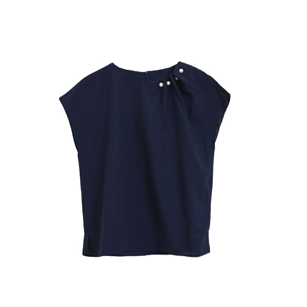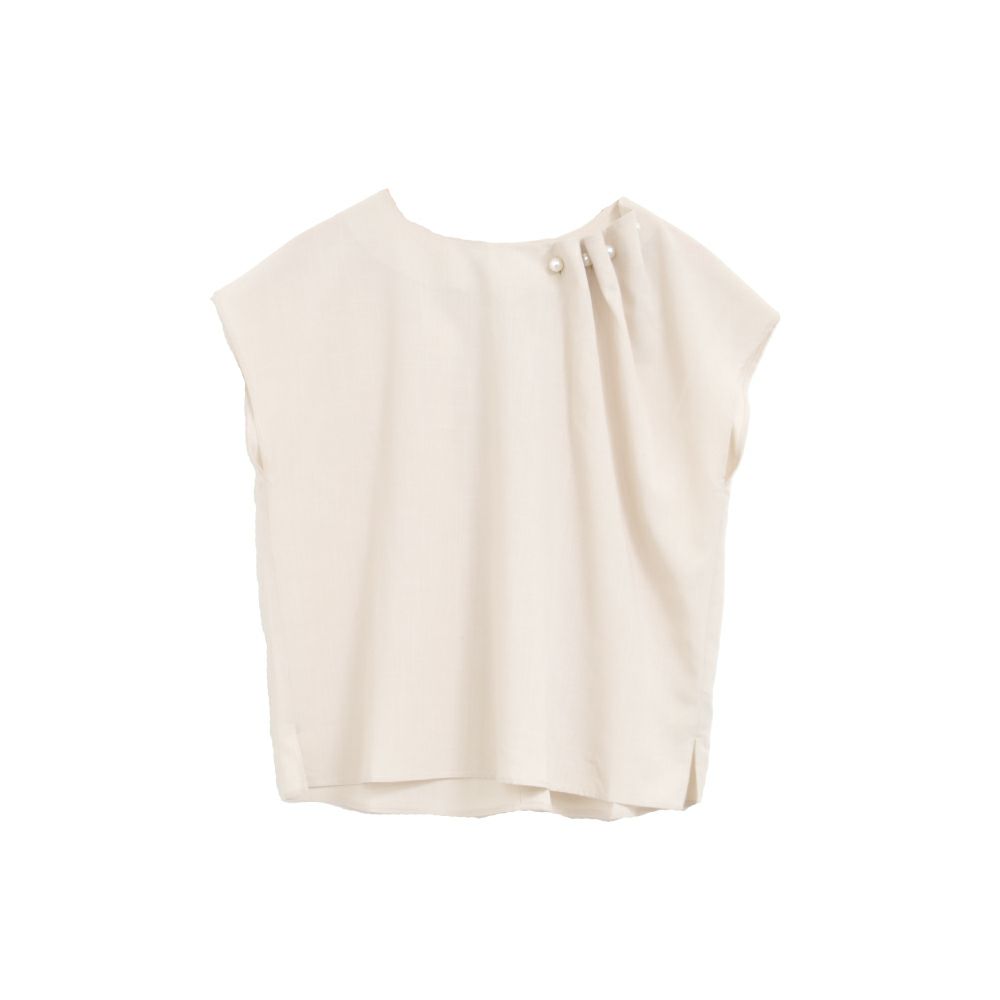 【最終値下げ価格】パール付きネックタックブラウス レディース 春 夏 秋 半袖 フレンチスリーブ | アクアガレージ aquagarage