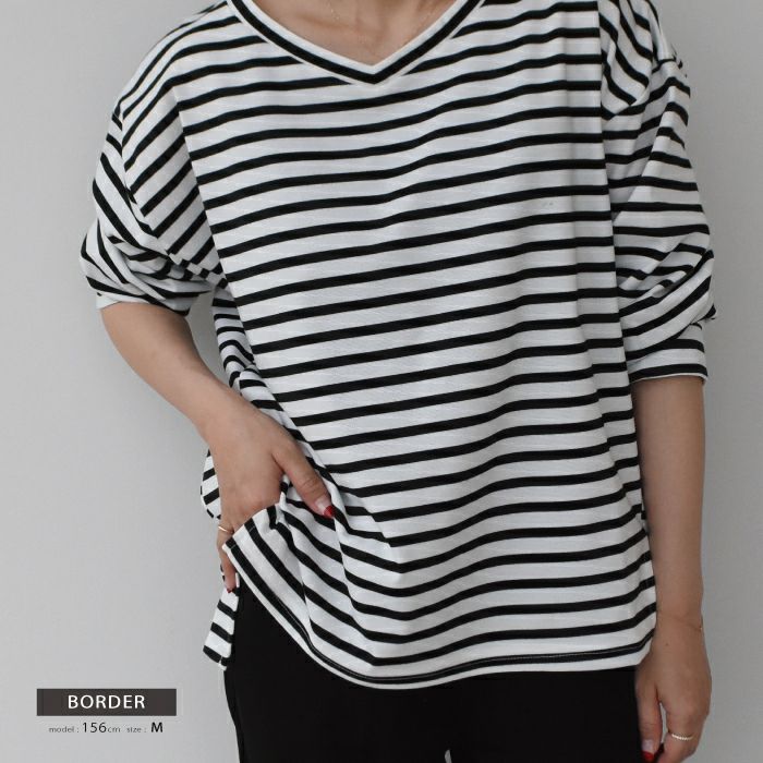 送料無料 ボーダーオーバーサイズドルマンカットソー レディース 春 夏 秋 M ≪ゆうメール便配送30・代引不可≫ | アクアガレージ aquagarage
