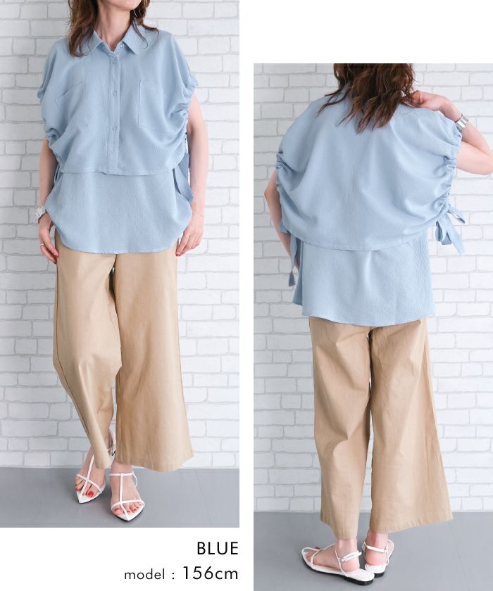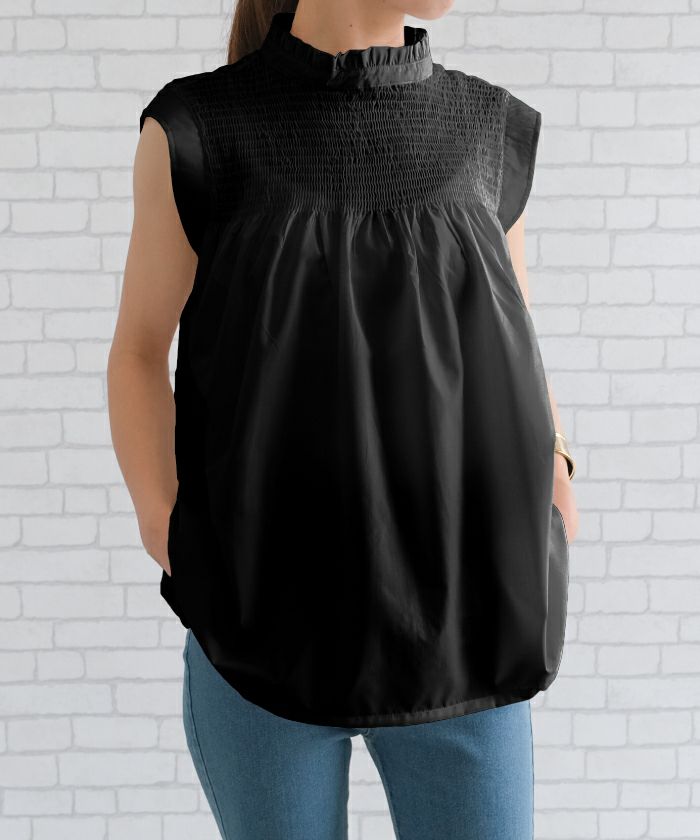 送料無料 デコルテシャーリングノースリーブブラウス 春 夏 秋 M ≪ゆうメール便配送10・代引不可≫ | アクアガレージ aquagarage