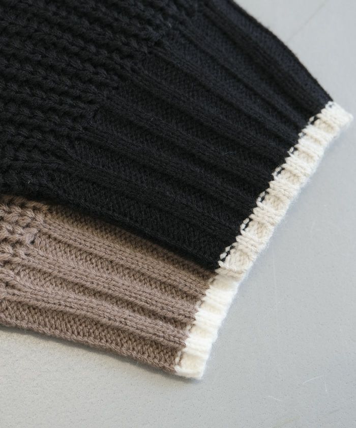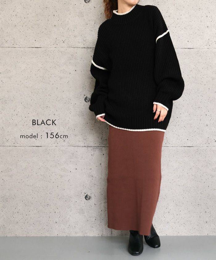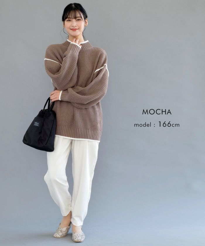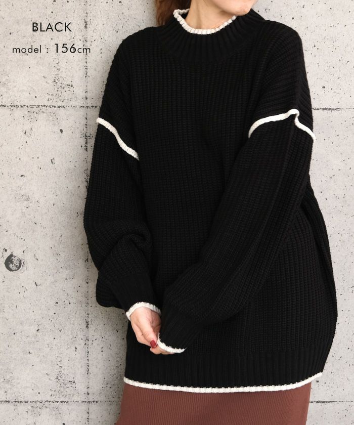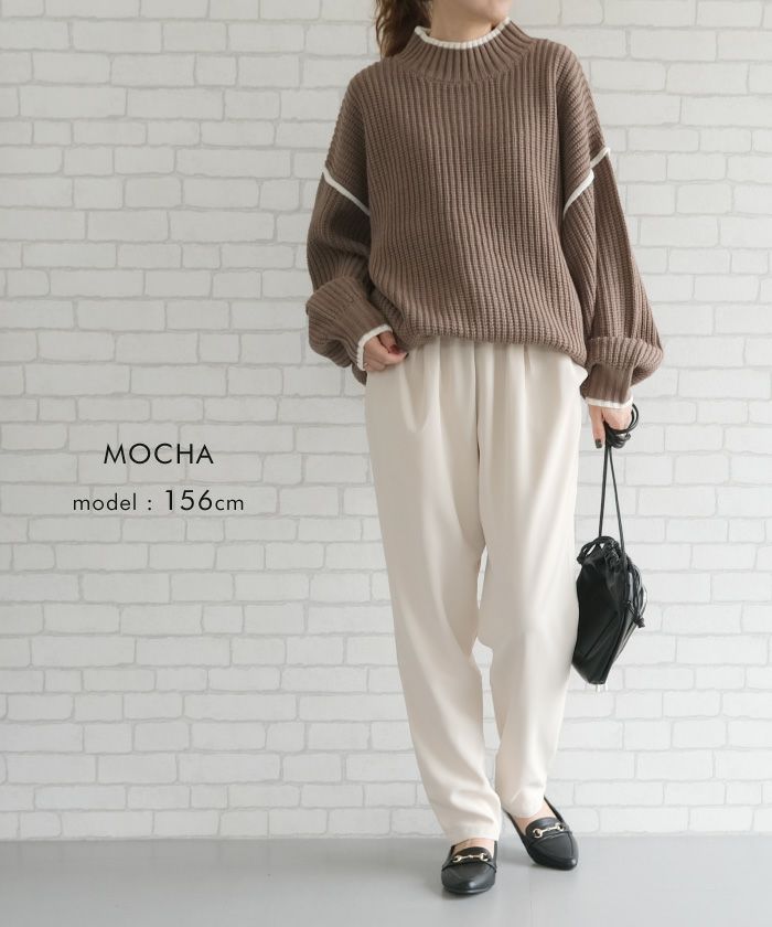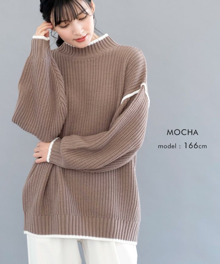 送料無料 バイカラーモックネックニットトップス レディース 春 秋 冬 | アクアガレージ aquagarage