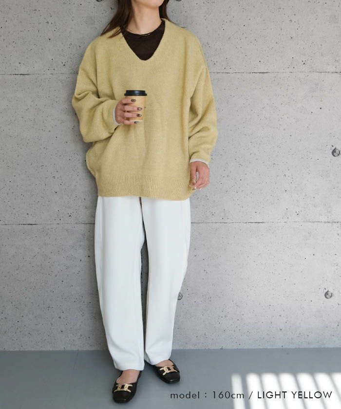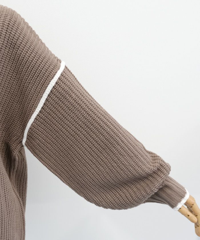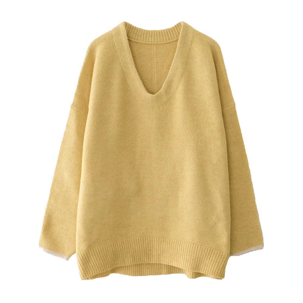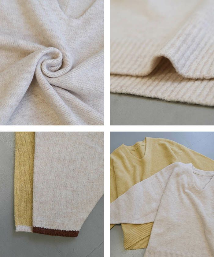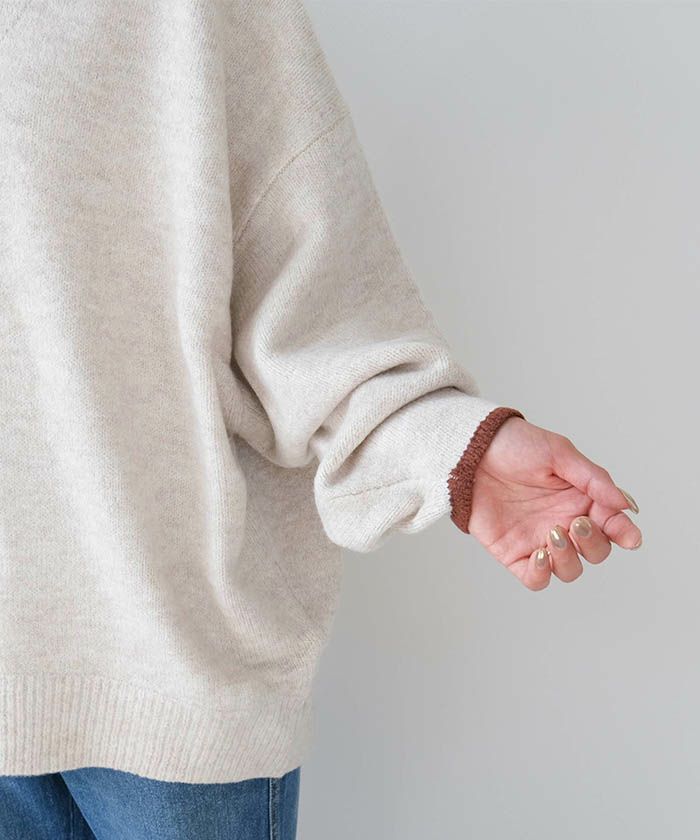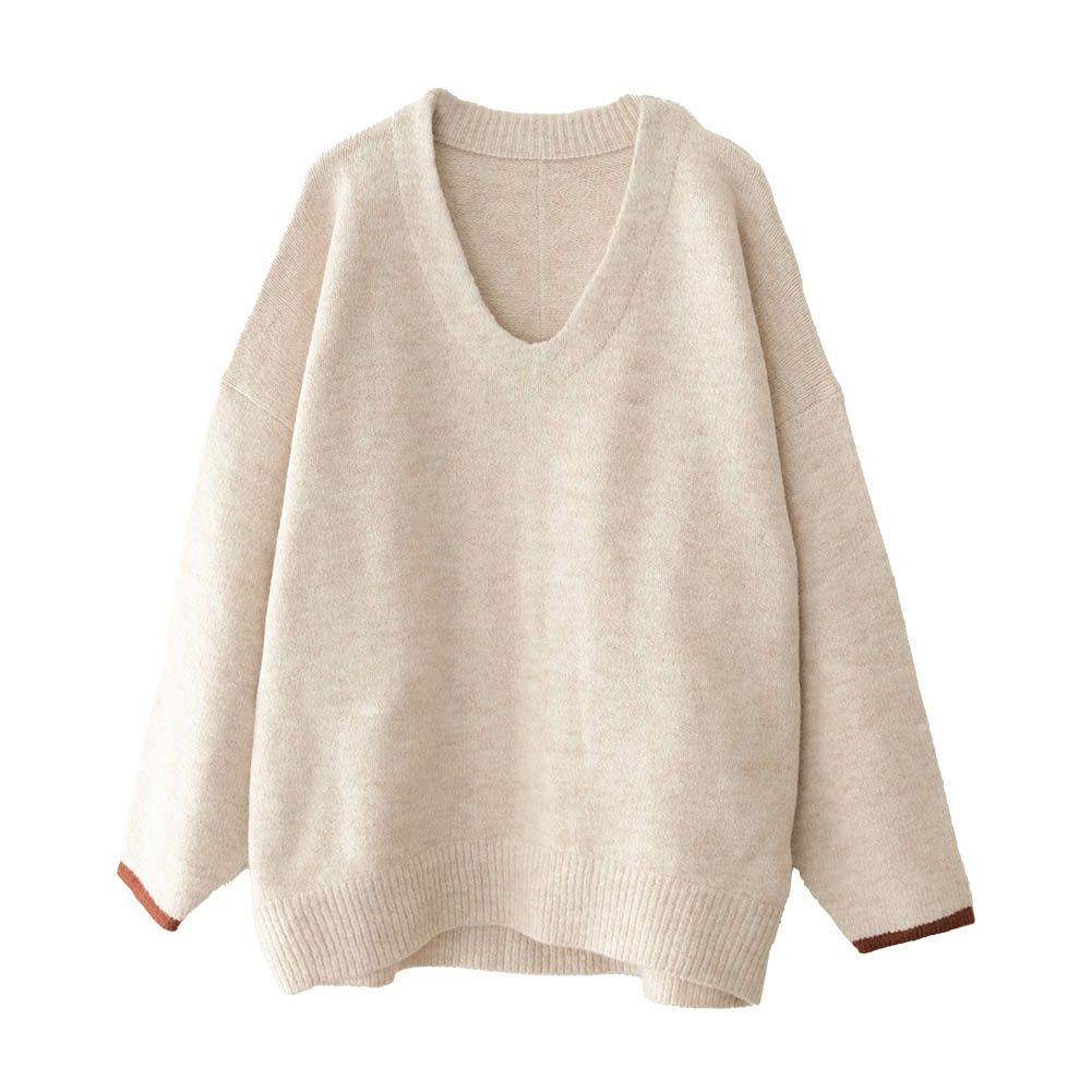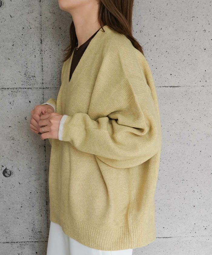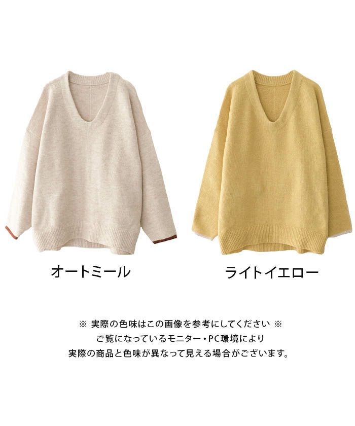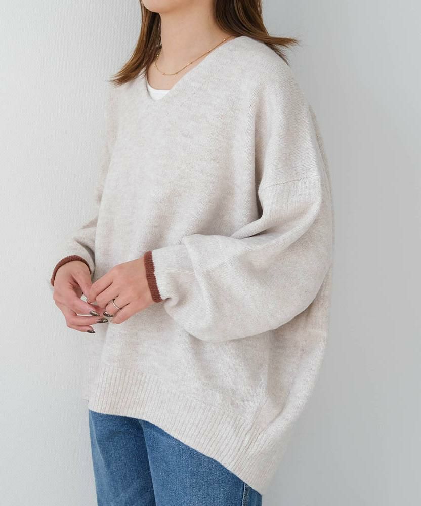 Vネック袖配色オーバーニットトップス レディース 春 秋 冬 | アクアガレージ aquagarage