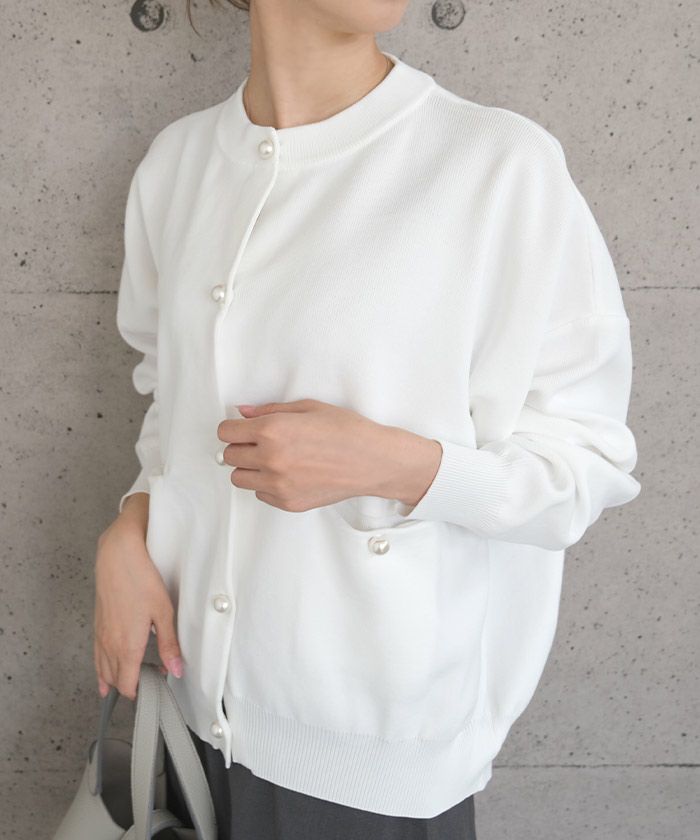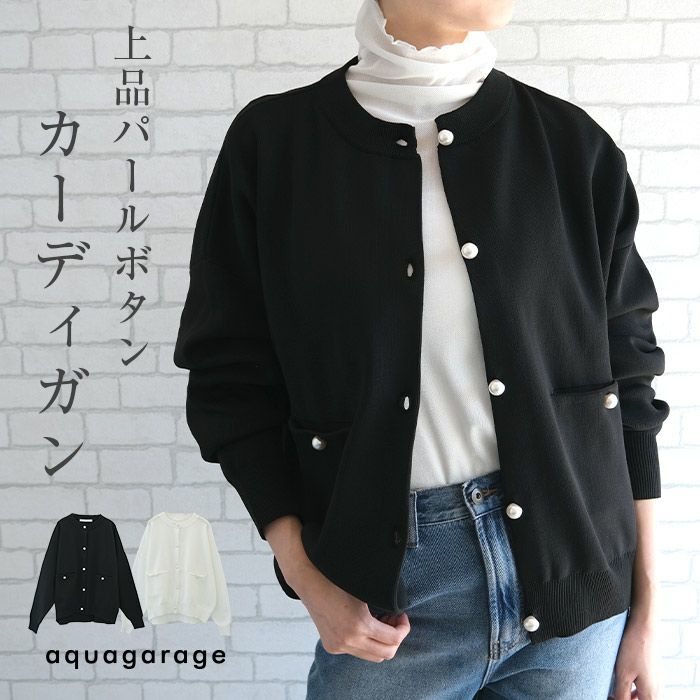 スポンジニットパールボタンカーディガン 春 秋 冬 M レディース | | アクアガレージ aquagarage