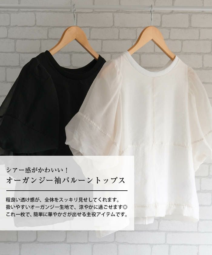送料無料 オーガンジー袖バルーントップス 春 夏 秋 ≪ゆうメール便配送20・代引不可≫| アクアガレージ aquagarage