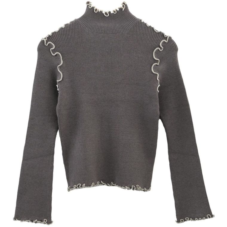 • 配色のフリルメローデザインが可愛い!ハイネックメローリブニット