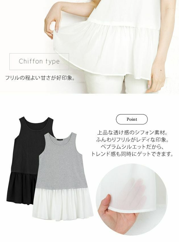 送料無料 選べる3タイプの裾付きタンクトップ/キャミソール シャツ シフォン カットソー ≪ゆうメール便配送10・代引不可≫ | アクアガレージ aquagarage