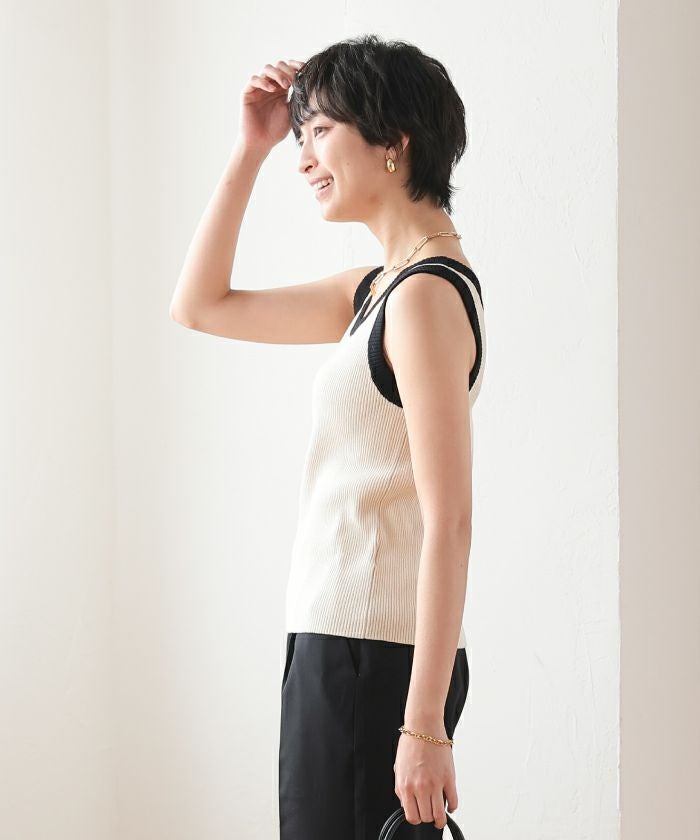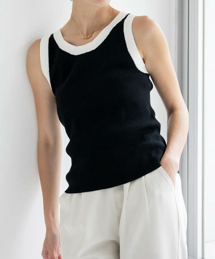 送料無料 配色ニットタンクトップ レディース 春 夏 秋 ≪ゆうメール便配送10・代引不可≫ | アクアガレージ aquagarage