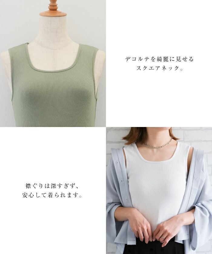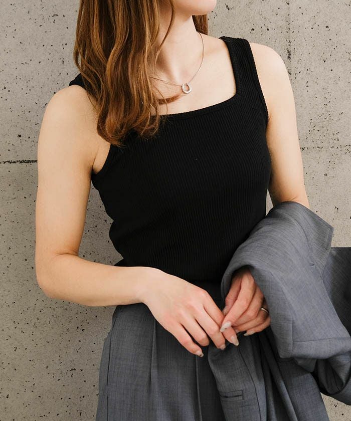 送料無料 スクエアカットリブニットタンクトップ 春 夏 秋 ≪ゆうメール便配送10・代引不可≫ | アクアガレージ aquagarage