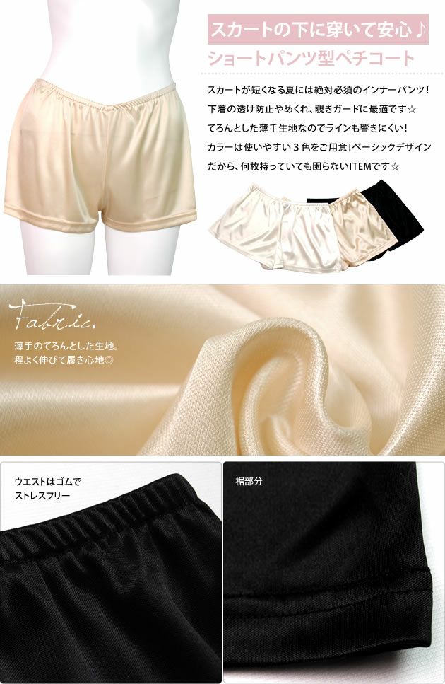 【999円祭り】ウエストゴムショートパンツ型ペチコート アクアガレージ aquagarage