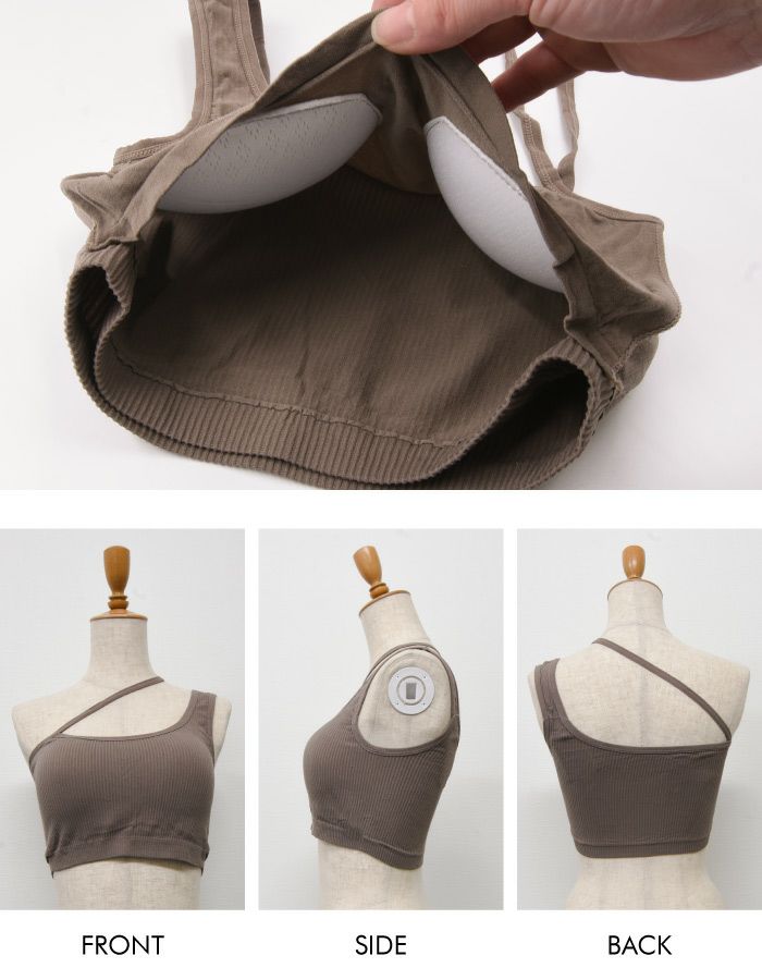 【999円祭り】斜めストラップリブブラトップ レディース ノンワイヤー カップ付き | アクアガレージ aquagarage