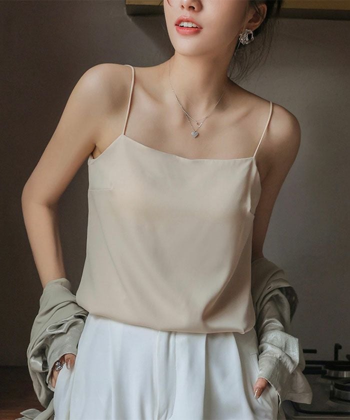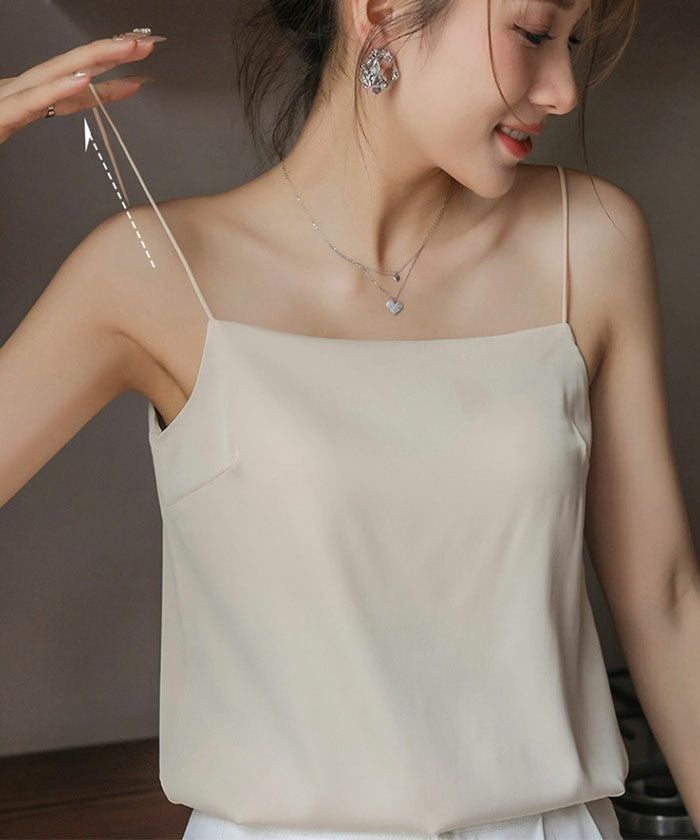 華奢なストラップとシンプルなシルエットが女性らしさを引き立て、インナーとしてはもちろん、見せるキャミソールとしても使える万能アイテム。