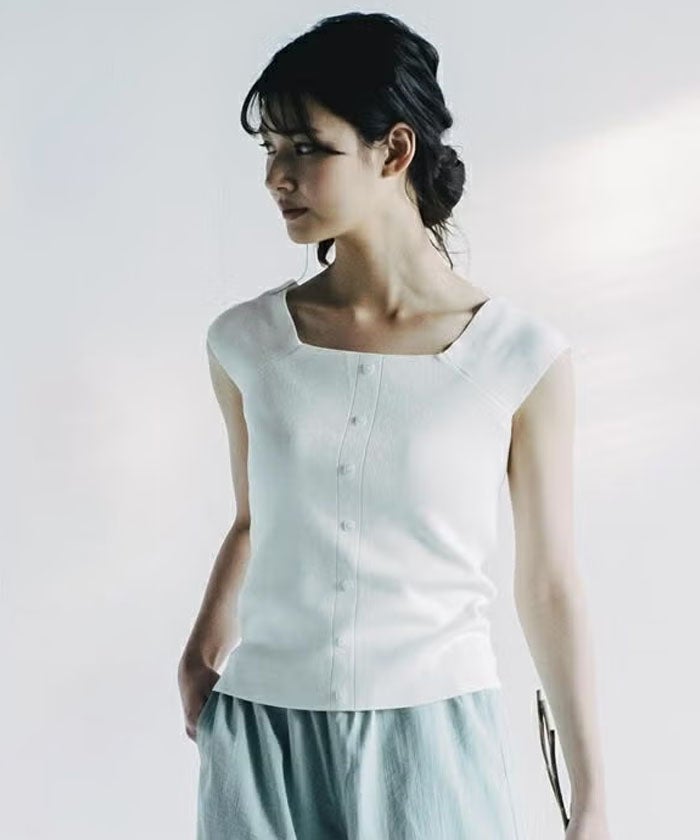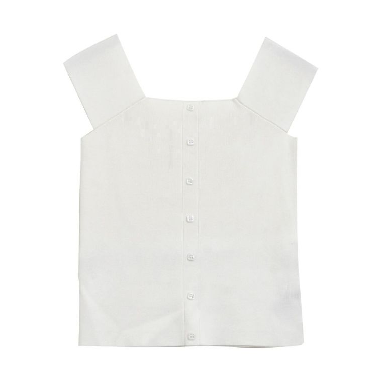 トップス インナー ニット レディース 春 夏 秋 冬 ノースリーブ 太めストラップ タンクトップ サマーニット リブ リブニット 切替 切り替え ボタン スクエアネック 無地 ガーリー フェミニン カジュアル シンプル ベーシック セーター コンパクト 華奢魅せ きれいめ キャミソール キャミタンク 20_01wrkt