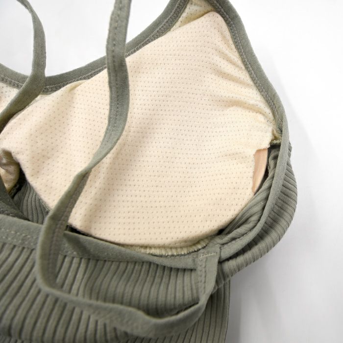 フロントについたボタンが可愛いカップ付きブラトップ。 日中はもちろん、おうち時間やリラックスタイムにも◎ 伸縮性のあるストレッチ素材で安心の着心地です。