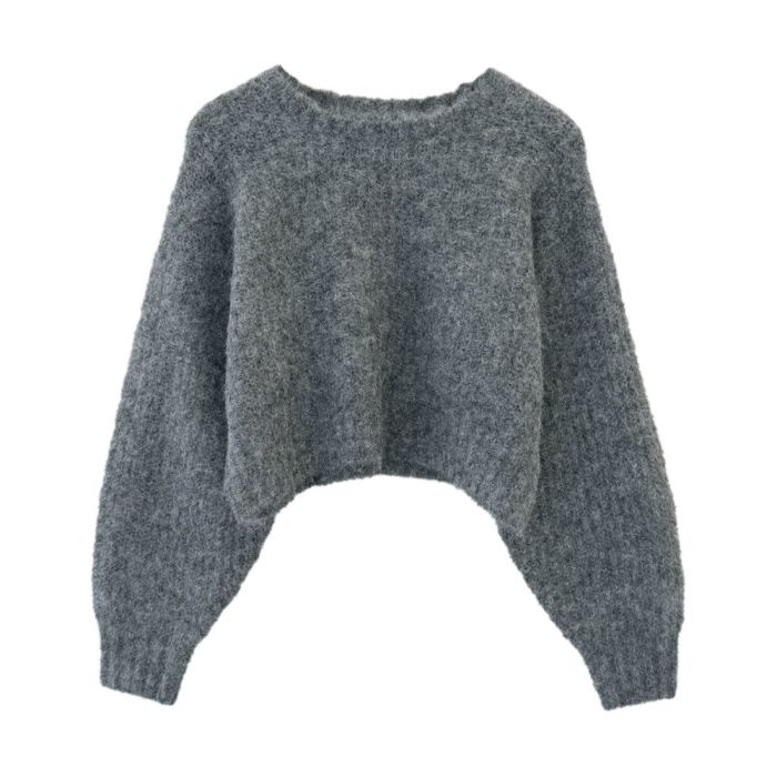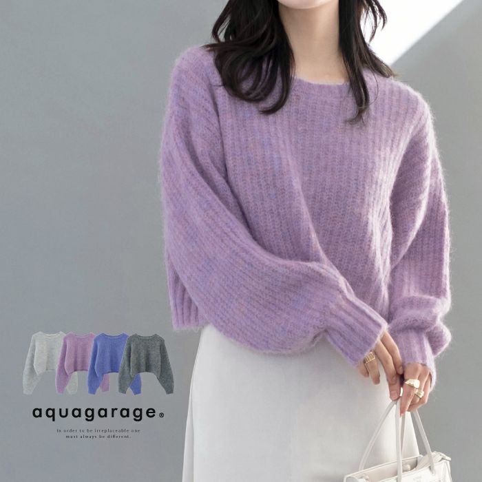 送料無料 ラウンドネックショート丈ニットトップス レディース 春 秋 冬 | アクアガレージ aquagarage