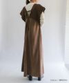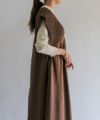 裾に向かって広がるロング丈のシルエットは、動くたびに軽やかな揺れ感を生み、フェミニンな雰囲気を漂わせます。