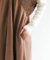 女性らしさを引き立てるシャーリングディテールが魅力のロングワンピース。