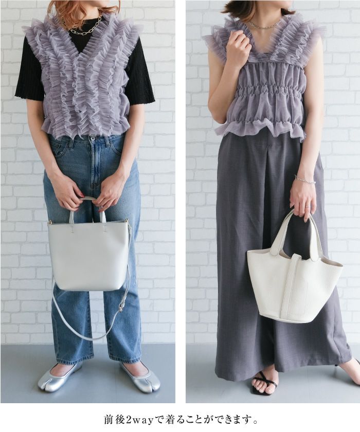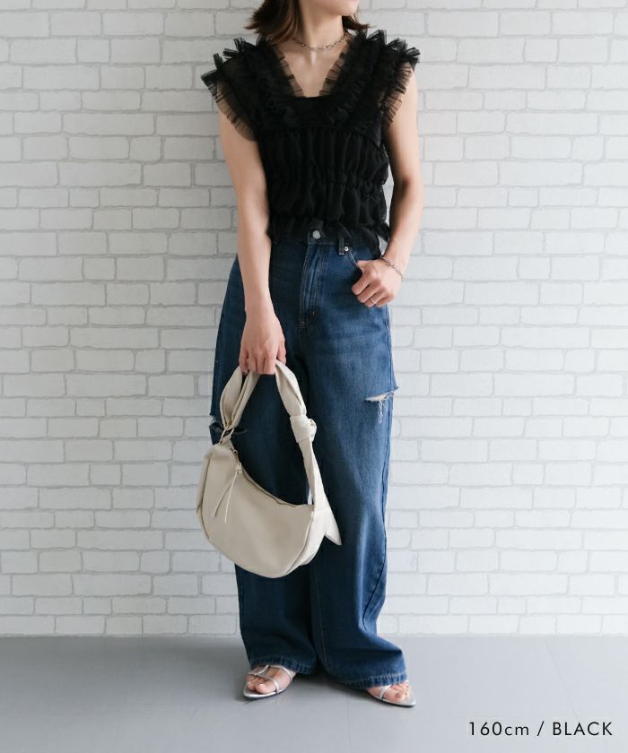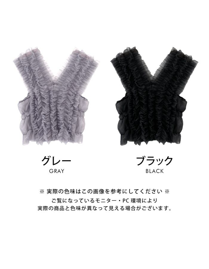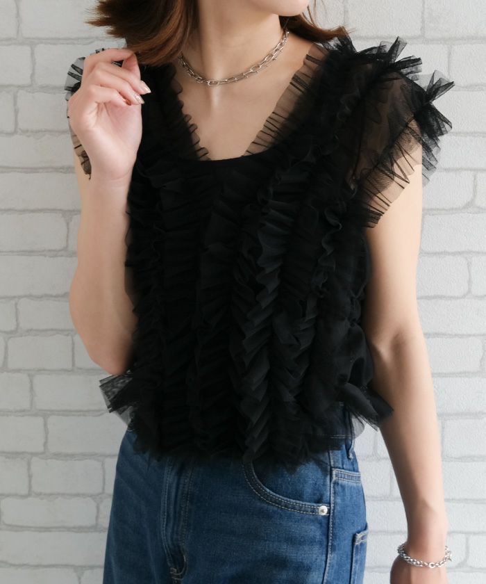 • シアー感のある繊細なチュールを重ねたチュールフリルタンクビスチェ