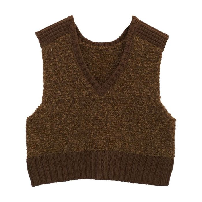 • シンプルなのに映える、ファンシーヤーンリブ切り替えベスト