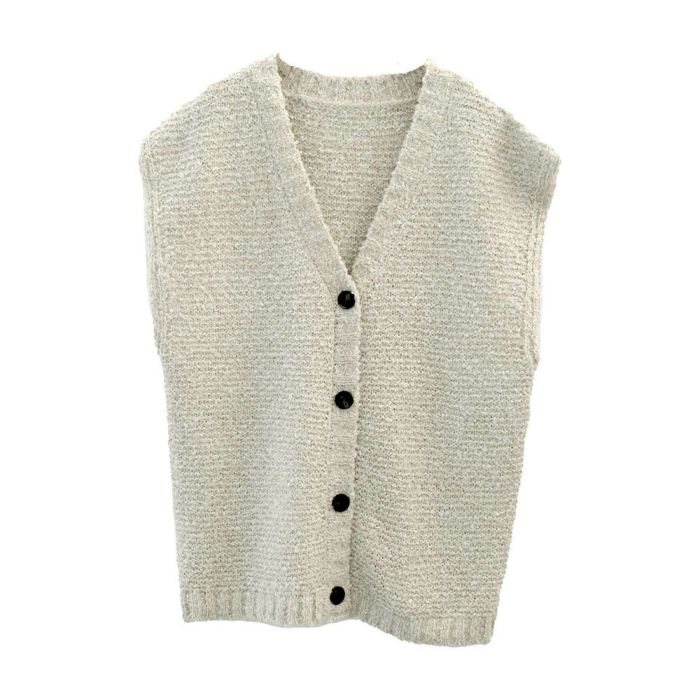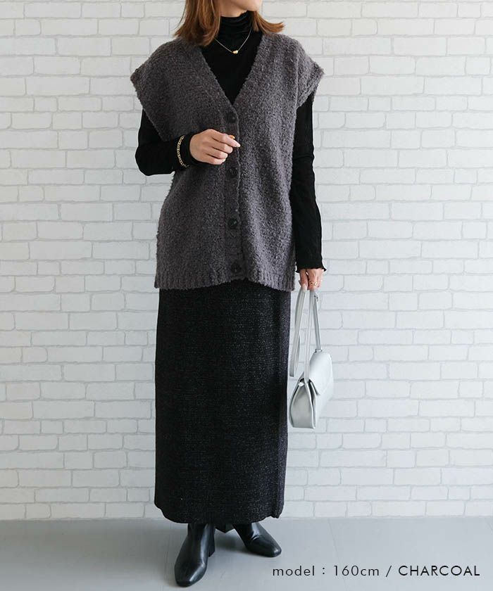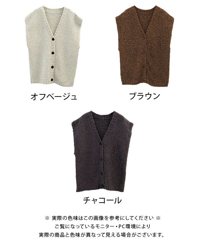 • シンプルなのに華やか、ファンシーヤーン前ボタンベスト