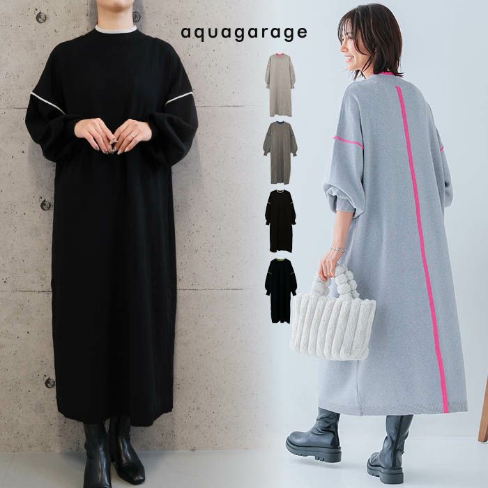 送料無料 ミラノリブ配色ロングワンピース レディース 秋 冬 | アクアガレージ aquagarage